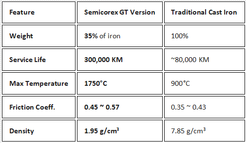 کاهش انبوه: نسخه GT تنها 35 درصد از یک دیسک چدنی استاندارد وزن دارد.