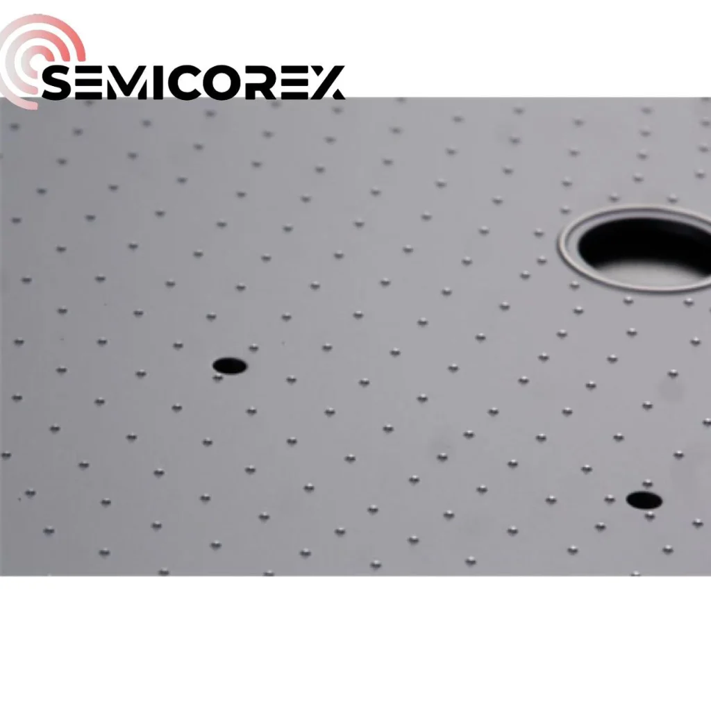 چاک های پین کاربید سیلیکون Semicorex تحت ماشینکاری و آسیاب دقیق قرار می گیرند. ارتفاع، قطر و فاصله پین ها روی سطح به شدت کنترل می شود. آنها می توانند به صافی چاک 0.3-0.5 میکرومتر دست یابند، که مسطح بودن بهینه ویفر را تضمین می کند و به طور قابل توجهی اعوجاج ویفر یا شکستگی ناشی از بارگذاری غیریکنواخت را حذف می کند.