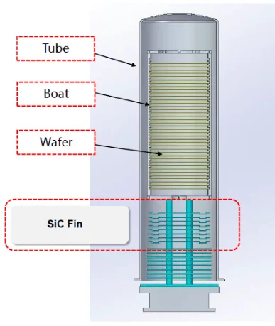 جامد نیمه کورکسباله های کاربید سیلیکونمعمولاً به عنوان اجزای عایق حرارتی در داخل لوله های کوره عمودی تجهیزات عملیات حرارتی نیمه هادی مانند کوره های آنیلینگ RTP و کوره های انتشار نصب می شوند. پرههای کاربید سیلیکون جامد Semicorex میتوانند به طور موثر توزیع دما را در کورههای با دمای بالا تنظیم کنند و آسیب حرارتی را به قطعات درزگیر فرآیند ناشی از دماهای بالا به حداقل برسانند. در شرایط عملیاتی اکسیداسیون مرطوب، پره های کاربید سیلیکون جامد Semicorex را می توان برای جلوگیری از تأثیرات منفی بر نتایج فرآیند و دستگاه های نیمه هادی ناشی از تراکم بخار آب در دمای نسبتاً پایین فرآیند استفاده کرد.